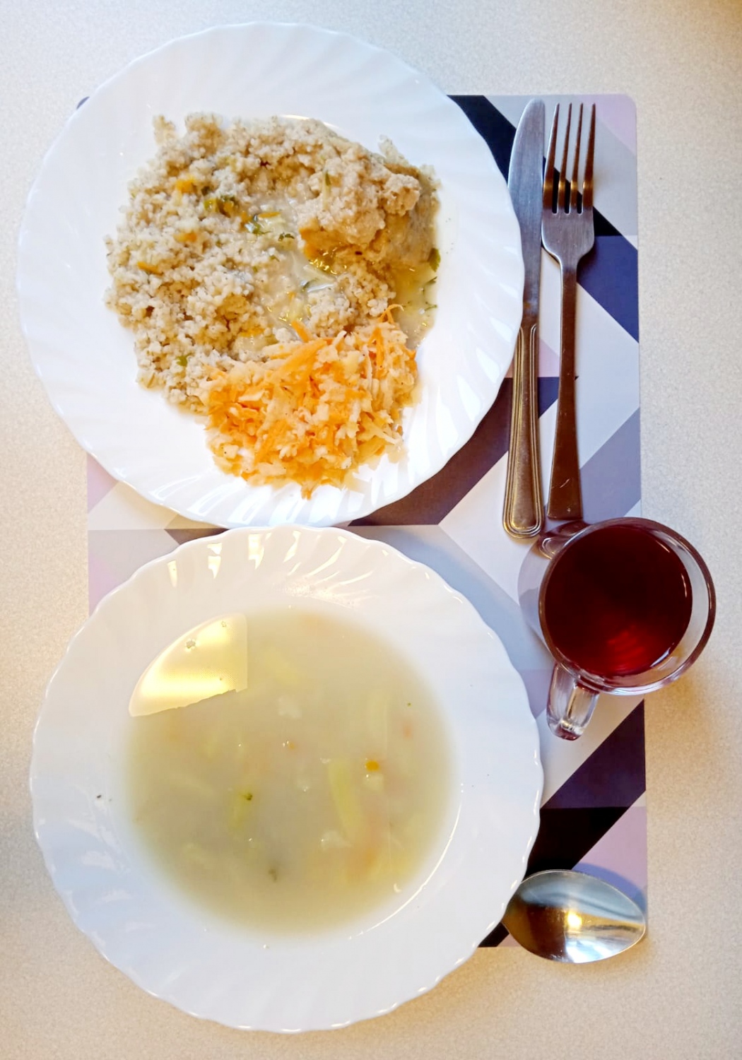 *Obiad * Kapuśniak z kapusty białej *400ml* Pieczeń rzymska wieprzowa *80g* Sos ziołowy* 100ml* Kasza jęczmienna *200g* Surówka z rzepy, jabłka, marchewki* 130g* Kompot owocowy *250ml* Cukier *5g *