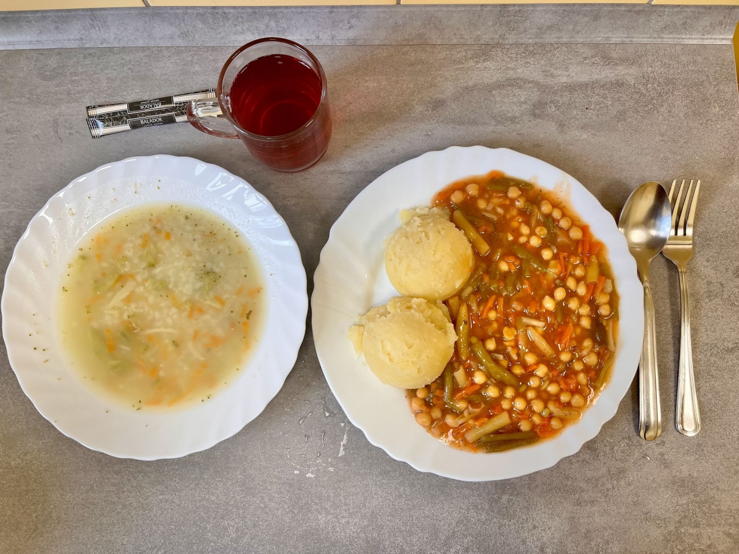 Obiad Brokułowa z ryżem 350 ml Gulasz warzywny z ciecierzycą 300g Ziemniaki 200g Kompot owocowy 250 ml Cukier 5g